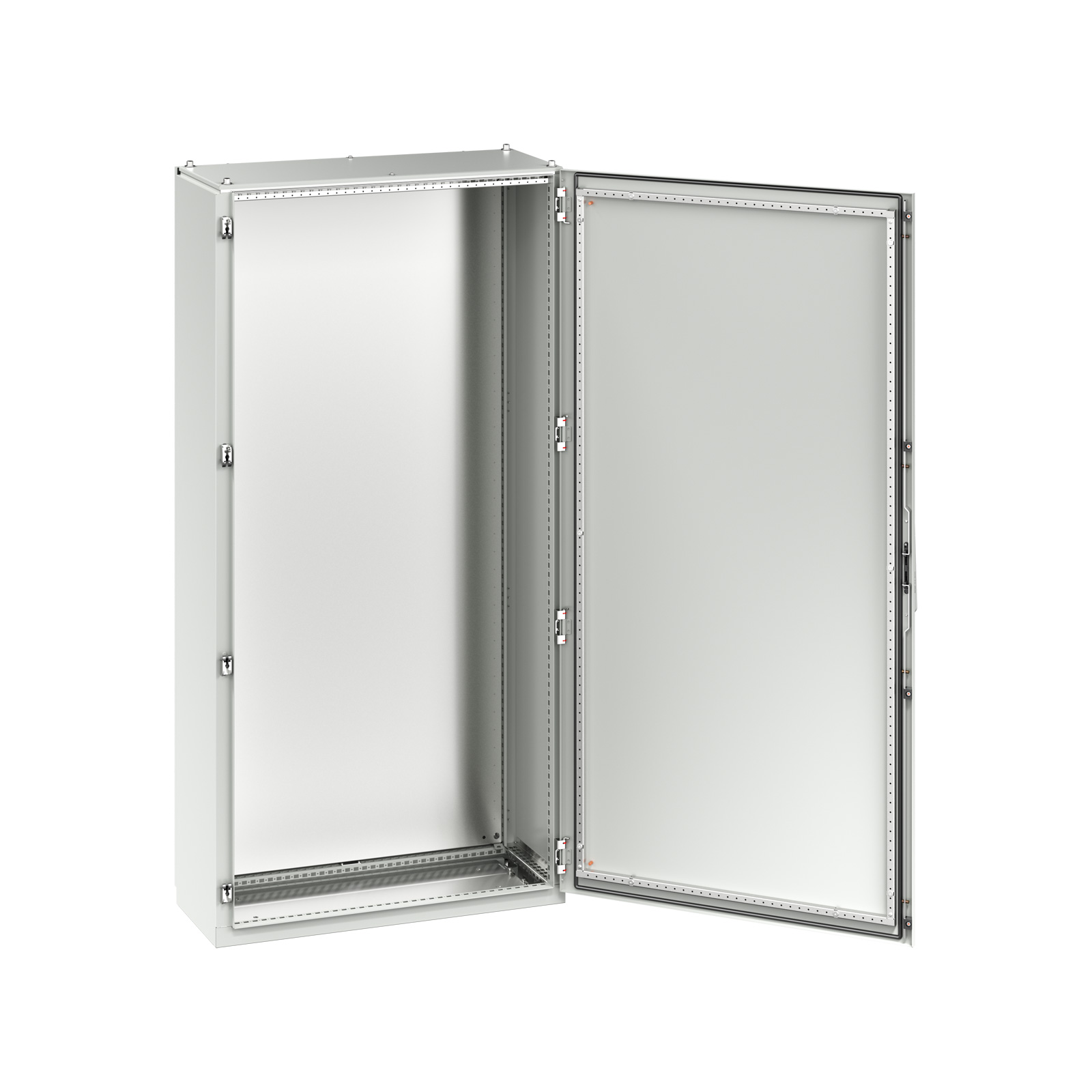 To create a variety of mounting surfaces and planes, we offer a wide range of system accessories designed for optimal use of the frame profile. We also supply components for controlling the internal environment of cabinets, such as heating units, fans with filters, and active cooling units.