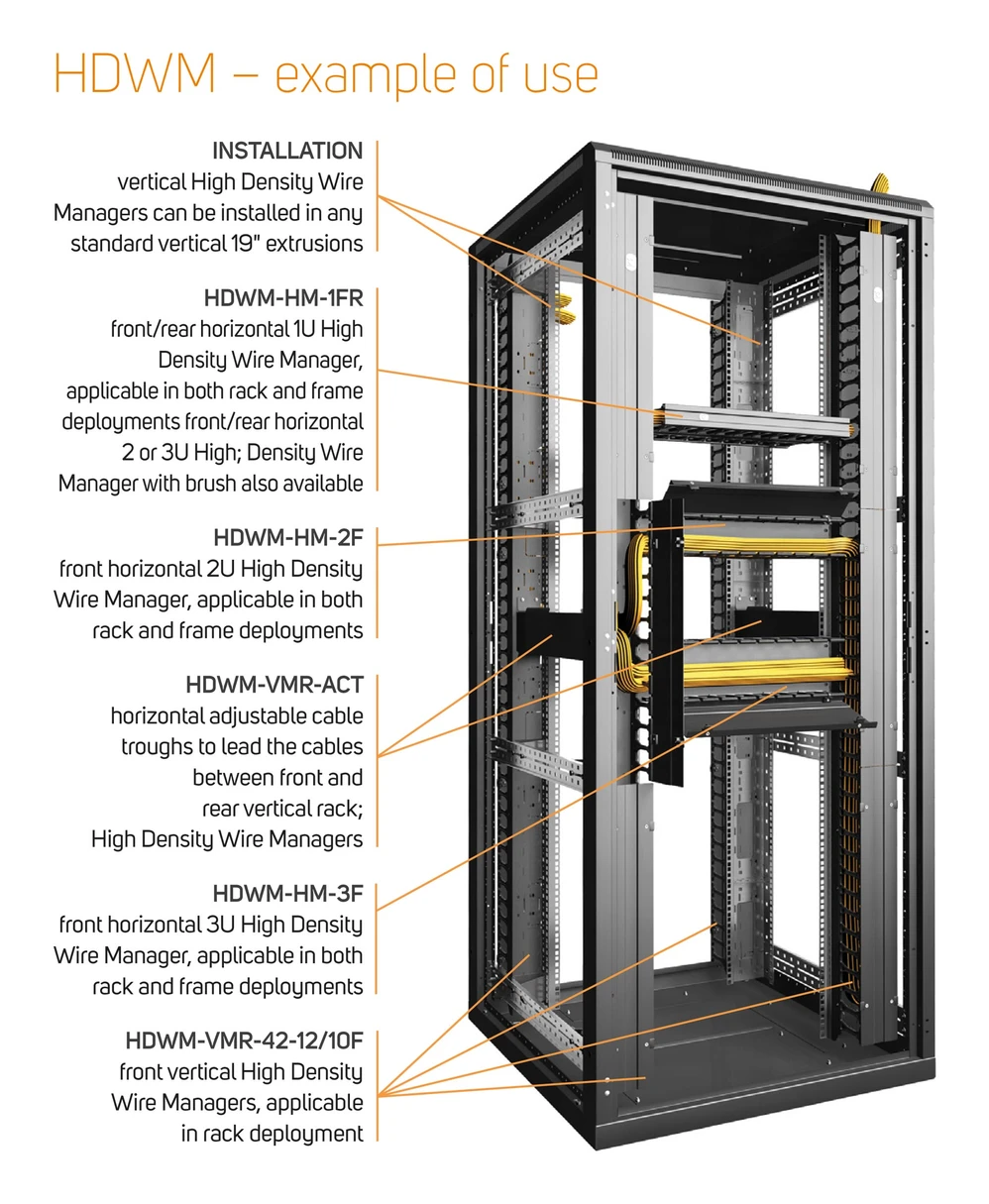 Panels 1 to 3U high, one-sided or double-sided design for safe routing of the maximum number of patch cords into vertical panels.